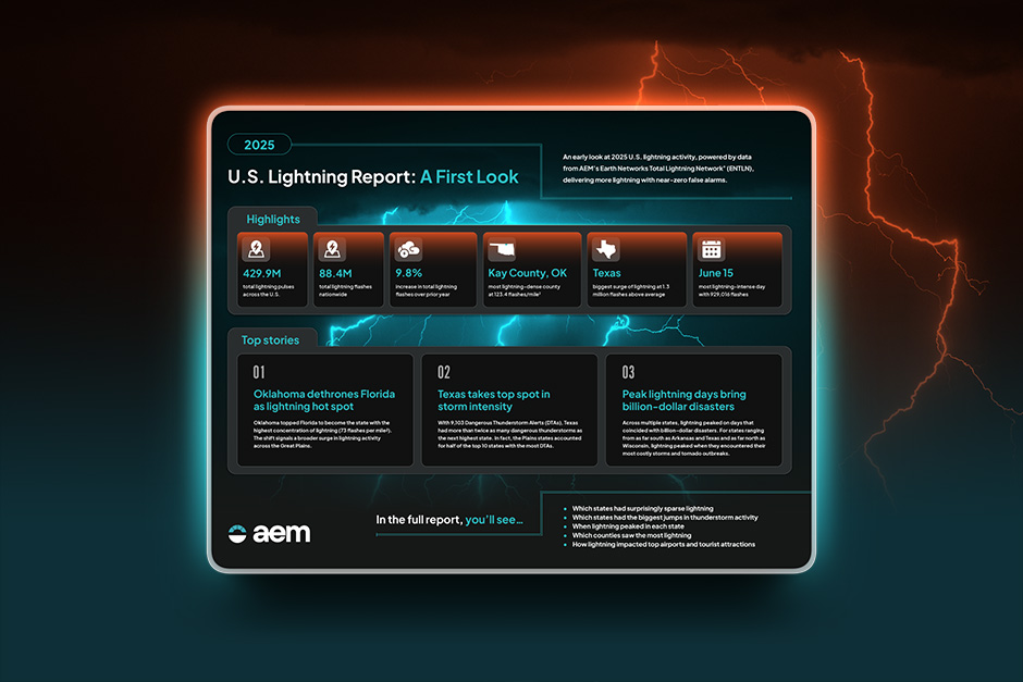 Data for the 2025 report was captured by AEM’s Earth Networks Total Lightning Network (ENTLN), the world’s most comprehensive global lightning detection network. ENTLN’s more than 1,800 sensors provide real-time detection and analysis that helps organizations better understand lightning risk and storm evolution.