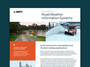 At AEM, we design complete systems, from sensors to data loggers to software, that deliver mission critical data to make the best decision possible. From winter weather conditions to flooded roadways, our road weather product line offers the most complete solution for agencies of all sizes.